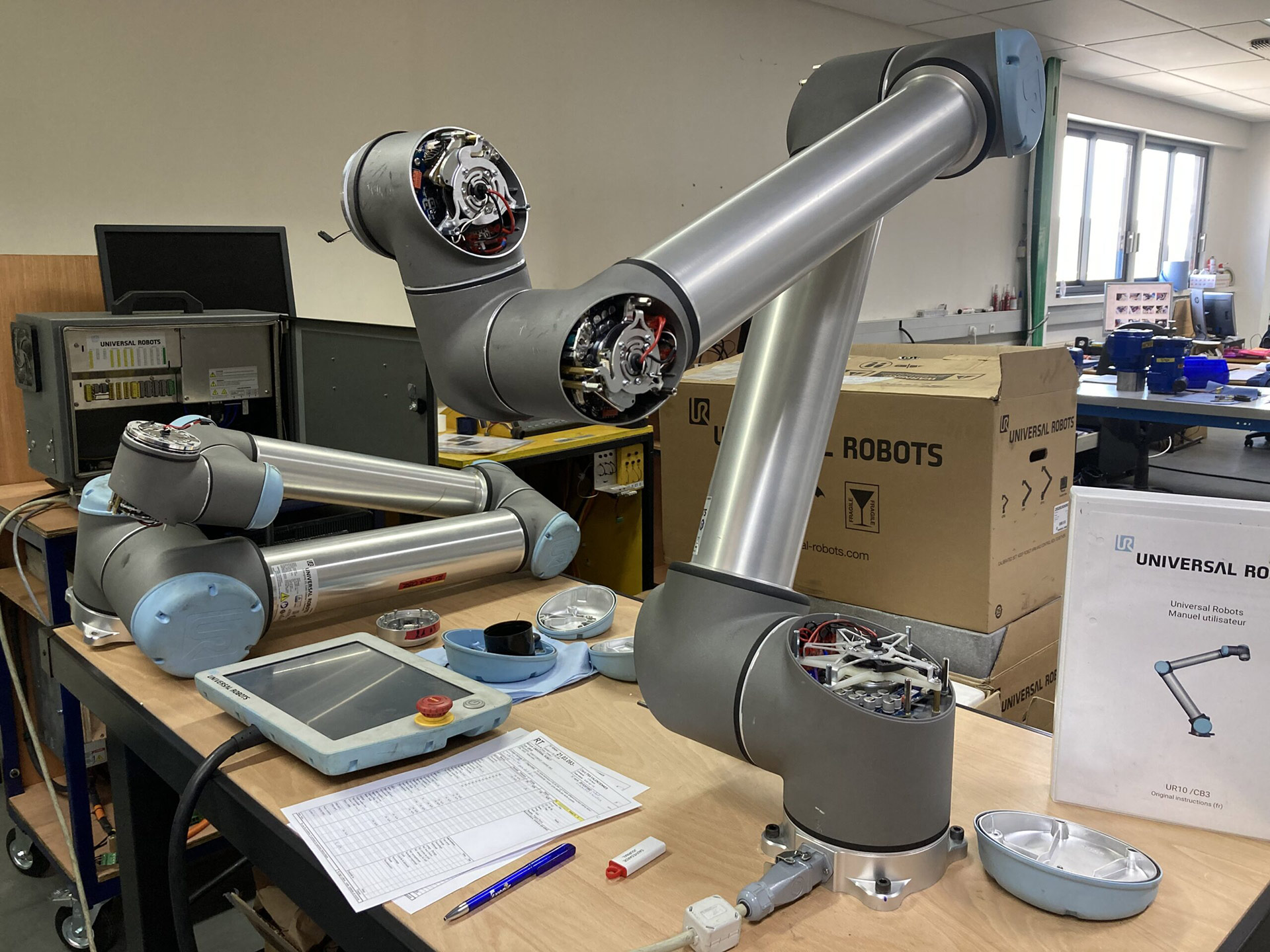 Depuis 2020 nous réparons des cobots Universal Robots avec baies ainsi que leurs articulations.
